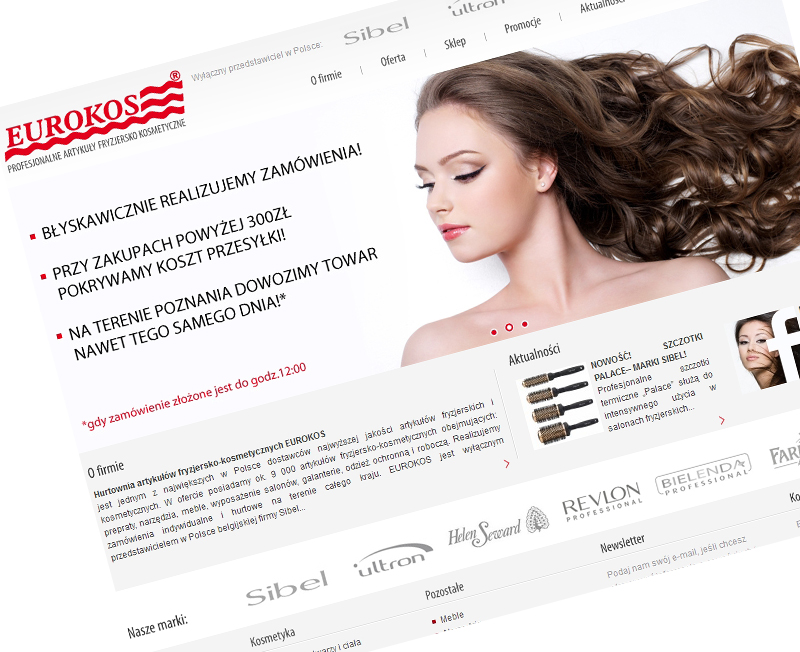 Dla naszego Klienta – firmy Eurokos, jednego z największych w Polsce dostawców najwyższej jakości artykułów fryzjerskich i kosmetycznych - stworzyliśmy nowy serwis internetowy, którego mechanizmy funkcjonują w oparciu o nasz firmowy system CMS. Również szata graficzna została przygotowana według naszego projektu.