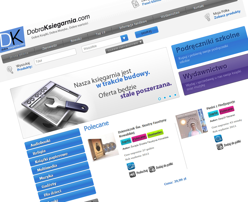 Stworzyliśmy rozbudowaną księgarnię internetową wyposażoną w moduł sprzedaży plików muzycznych, audiobooków oraz ebooków.